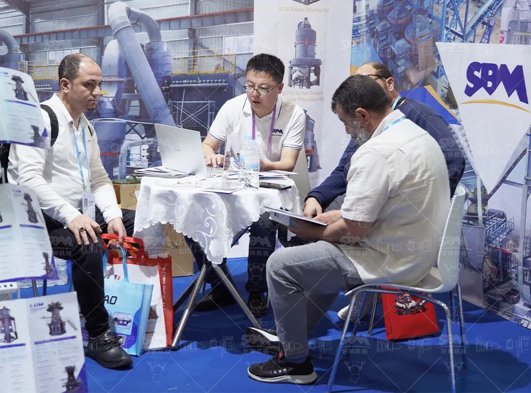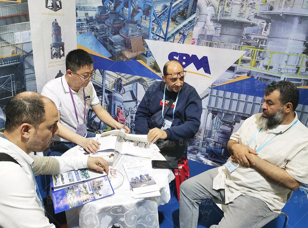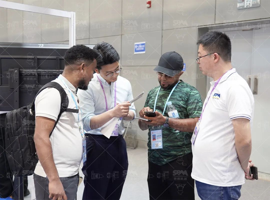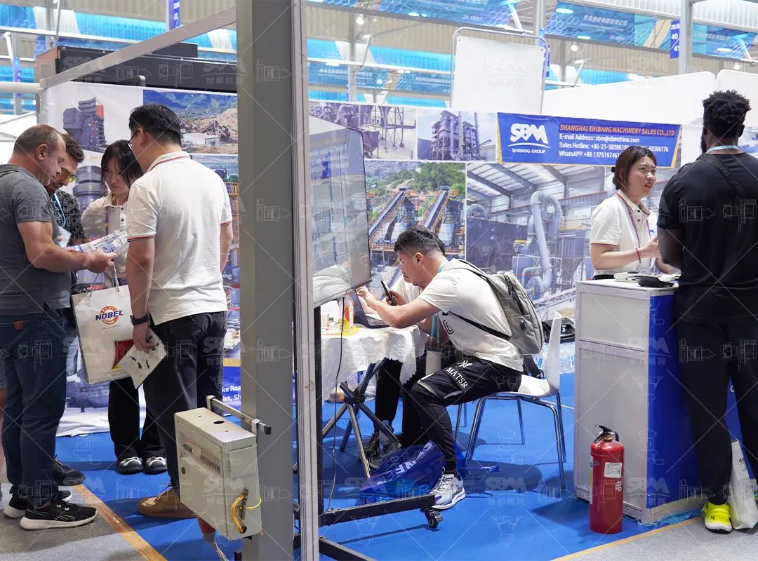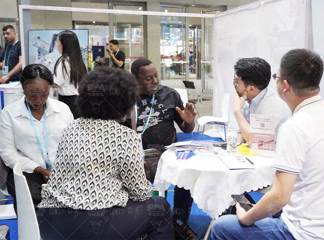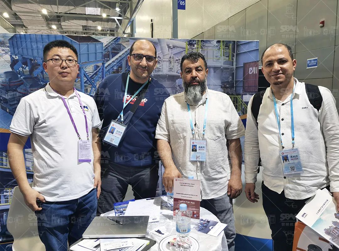 點燃全球客商熱情展會現場走進廣交會20.1展館N01-02展位,世邦展區始終人頭攢動。展臺以藍白為主色調,搭配雙面案例墻與實物設備模型,生動展示著全球百余個標桿項目的實景應用,直觀呈現從原料破碎、研磨到成品包裝的全流程解決方案。