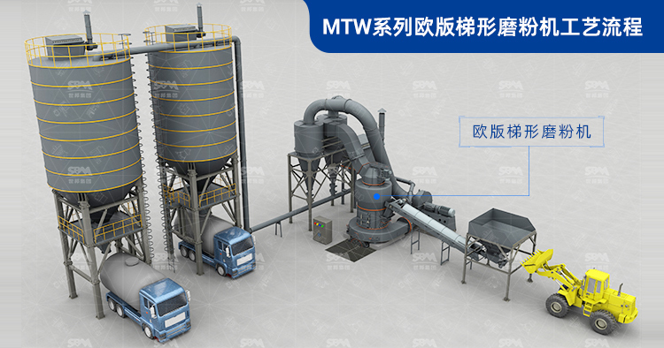 該磨粉生產線配置信息:原料為石灰石; 產能為40萬噸/年; 出料粒度為325目D90; 成品用途為電廠脫硫; 主要設備為4臺MTW175G……